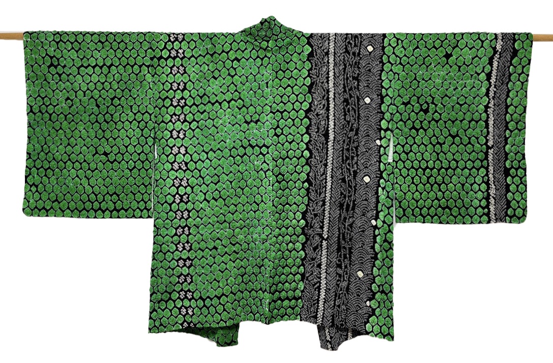 正絹 / 総絞り羽織 / 疋田絞り / 緑 x 黒