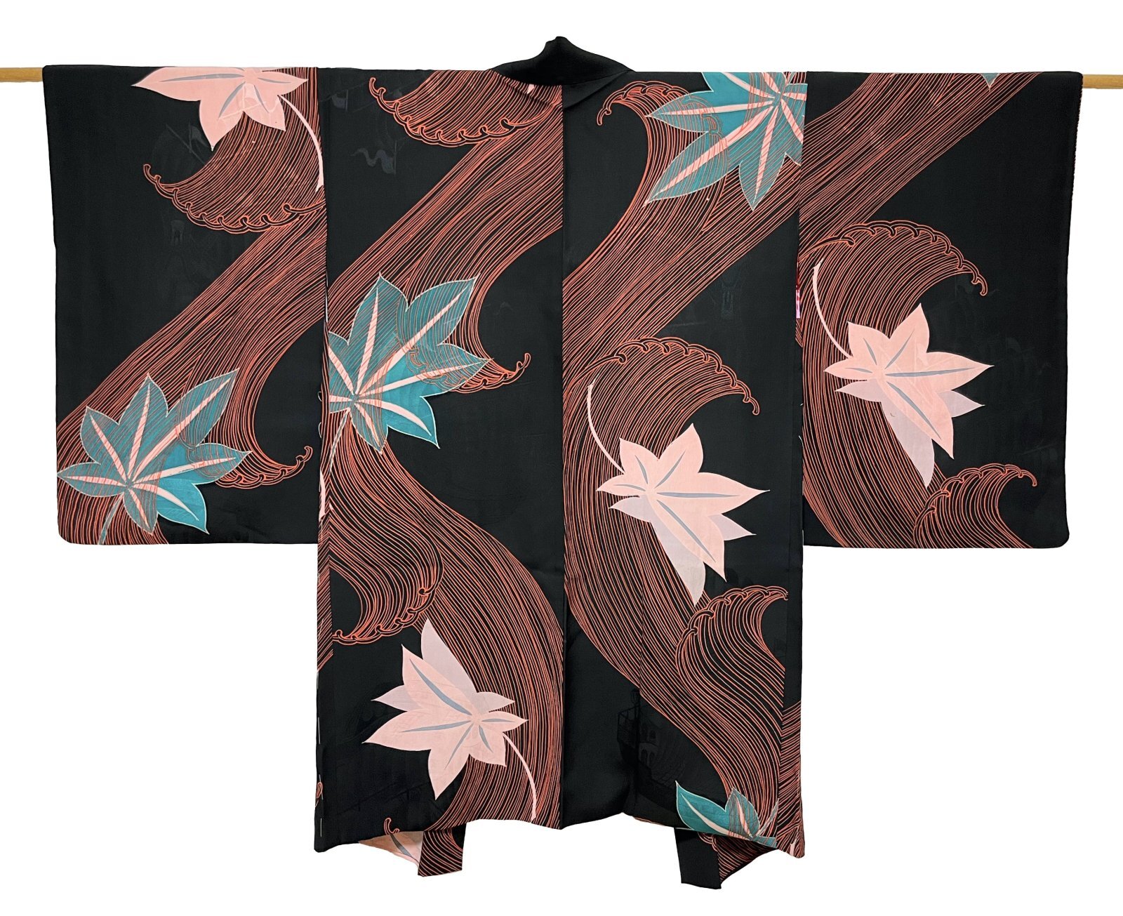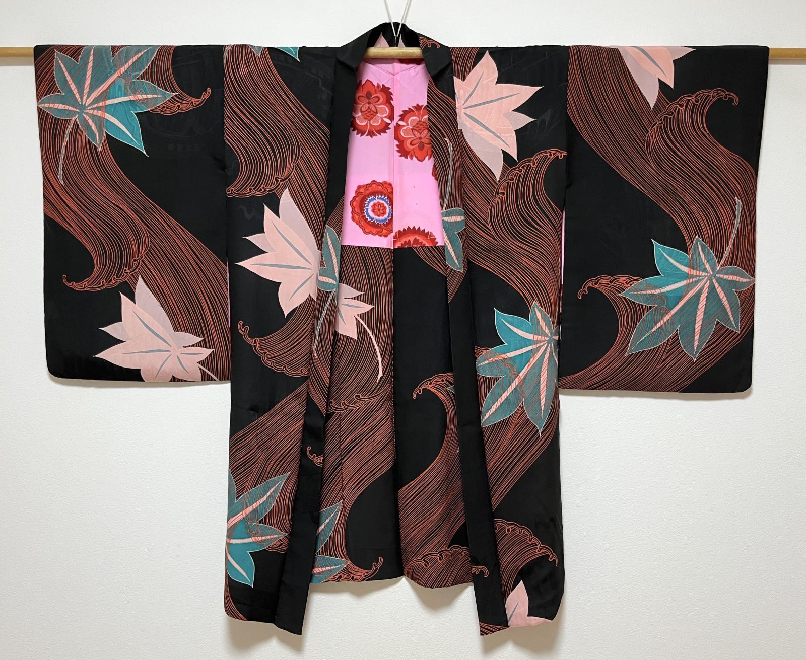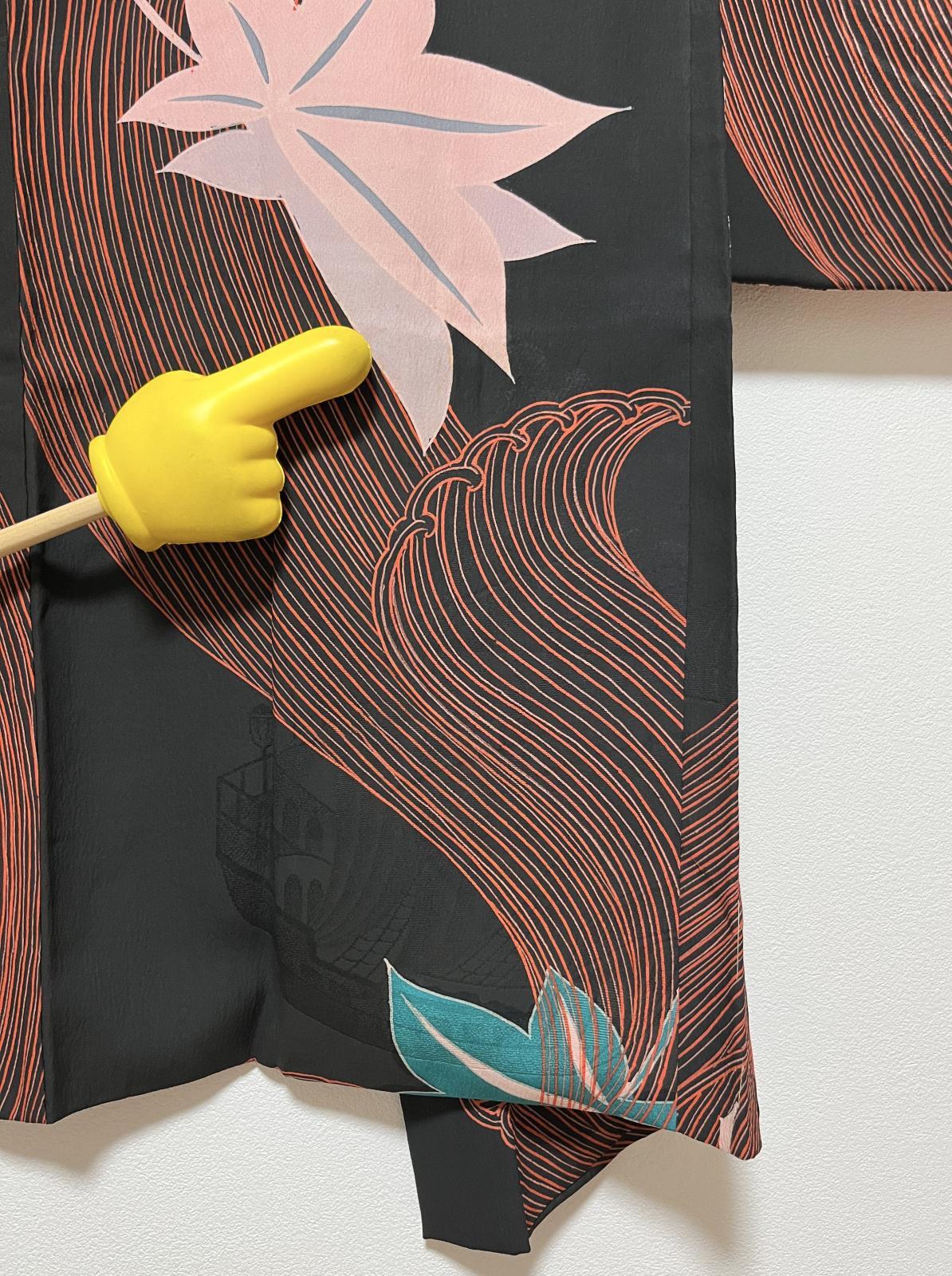 正絹 / アンティーク 長羽織 / 大波にもみじ / 染め / 帆船の地紋 [0004]