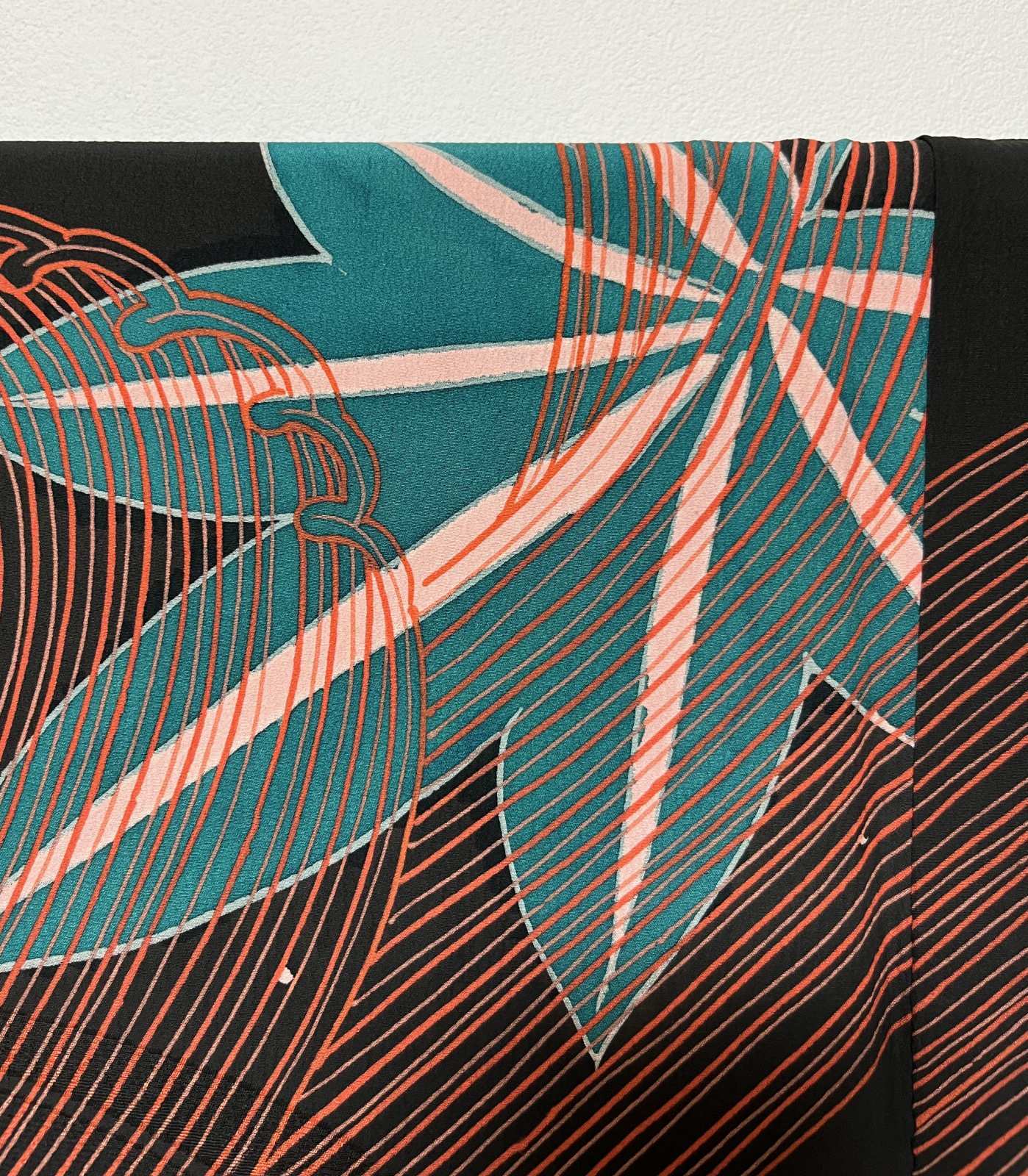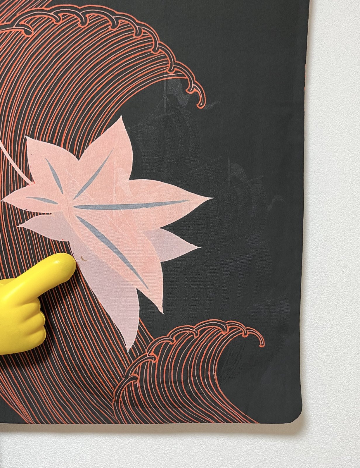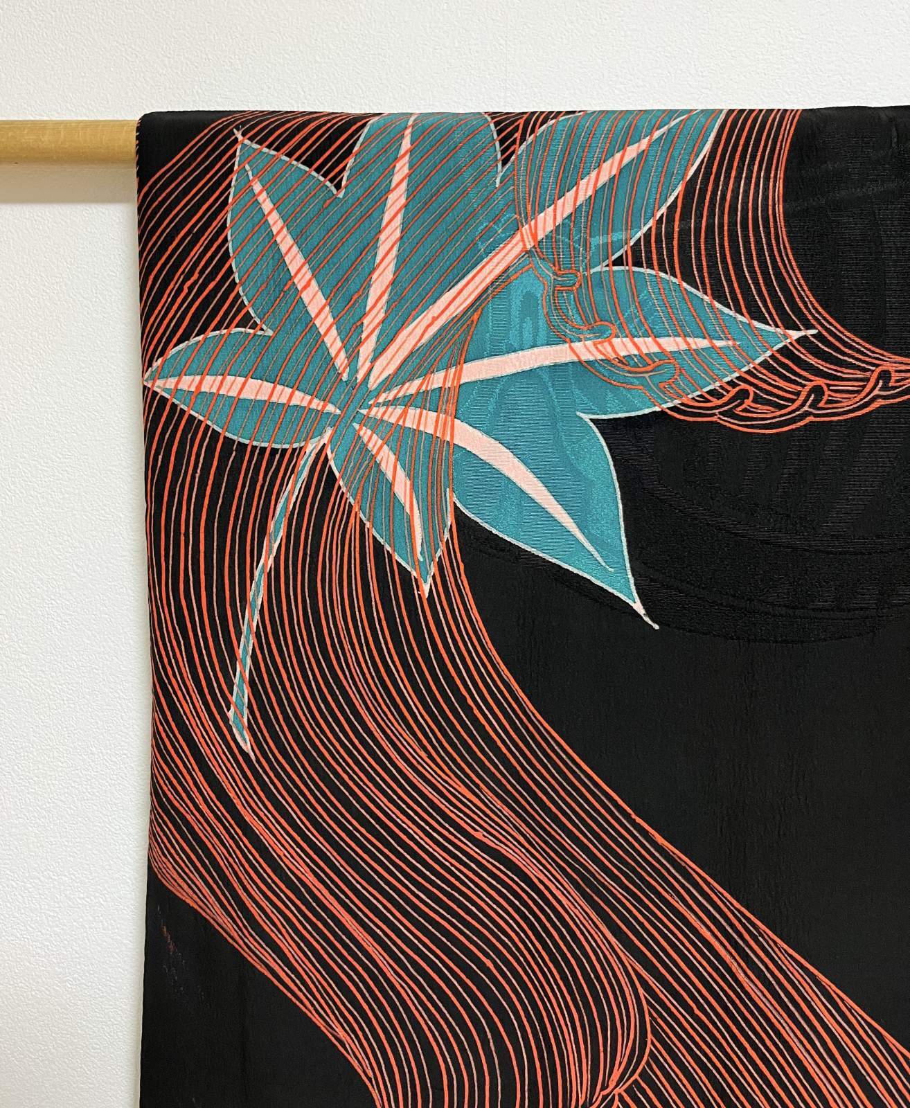 正絹 / アンティーク 長羽織 / 大波にもみじ / 染め / 帆船の地紋 [0004]