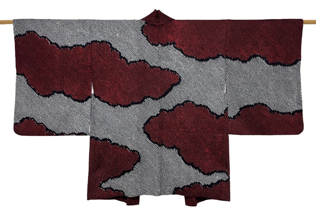 正絹 / 総絞り羽織 / 疋田絞り / 瑞雲 / 黒 x 濃赤