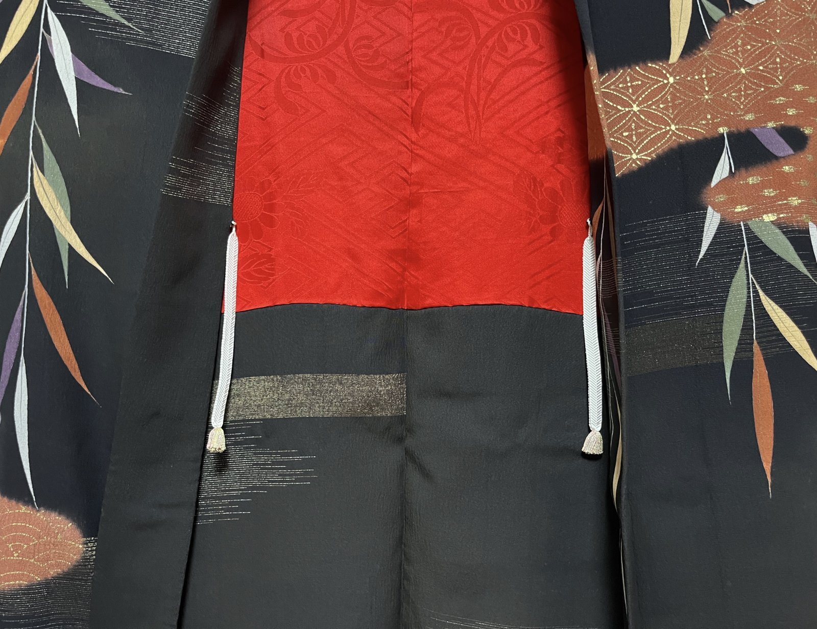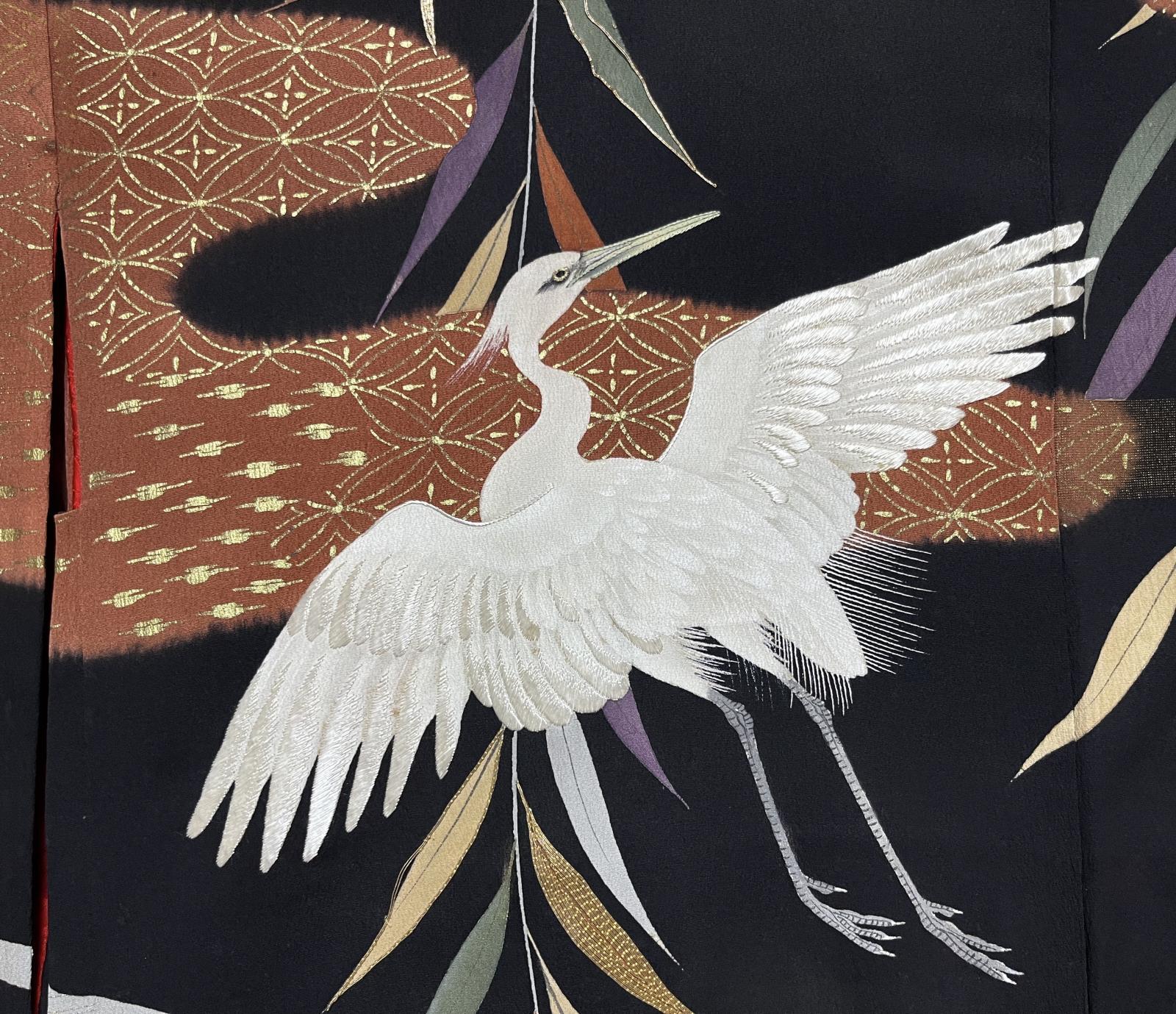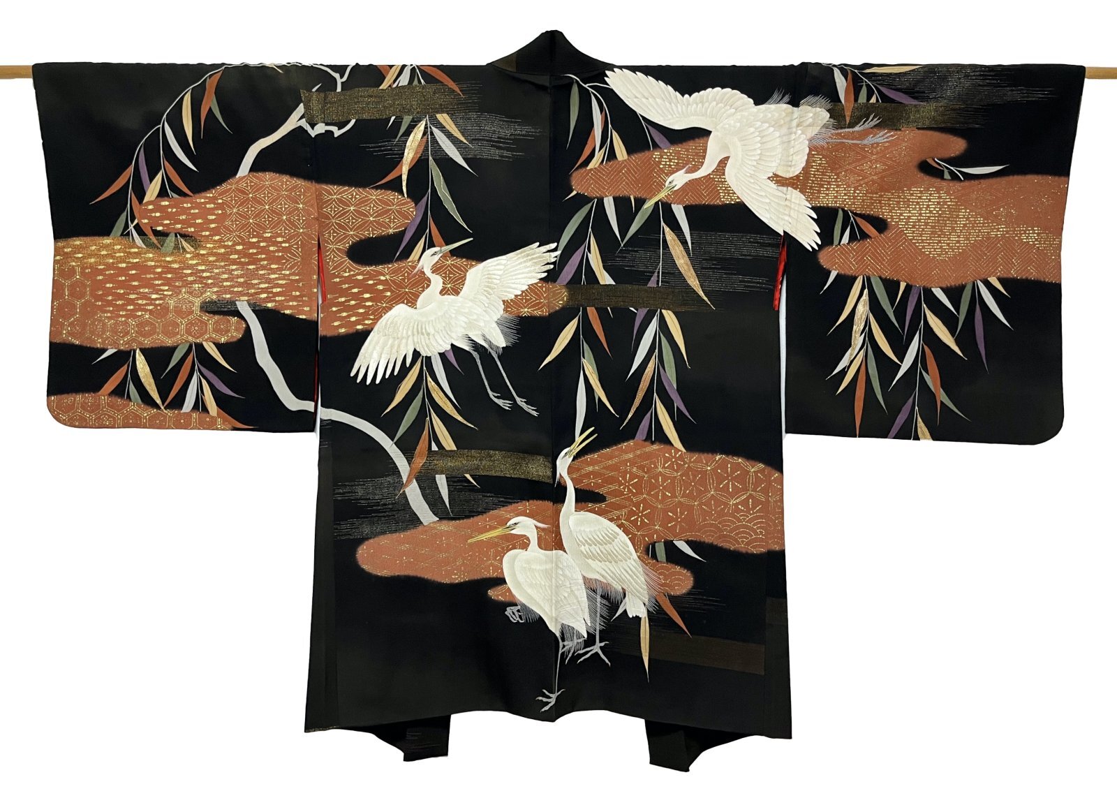 正絹 / アンティーク 黒羽織 / 白鷺 / 柳 / ヱ霞 / 金彩 / 手刺繍 [0005]