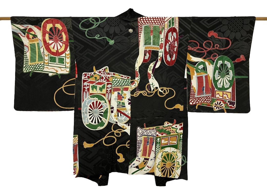 正絹 / アンティーク 黒羽織 / 御所車 / 紗綾形の地紋