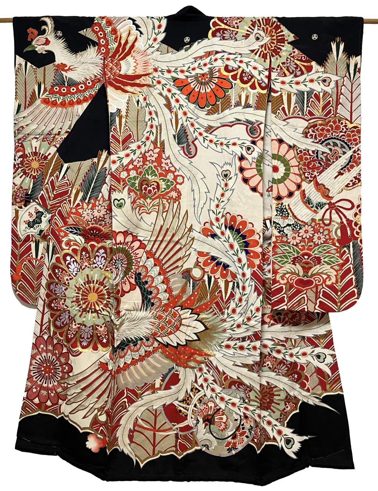 正絹 / アンティーク 婚礼黒引き振袖 / 鳳凰 / 金彩 駒刺繍 / 広衿 [0006]