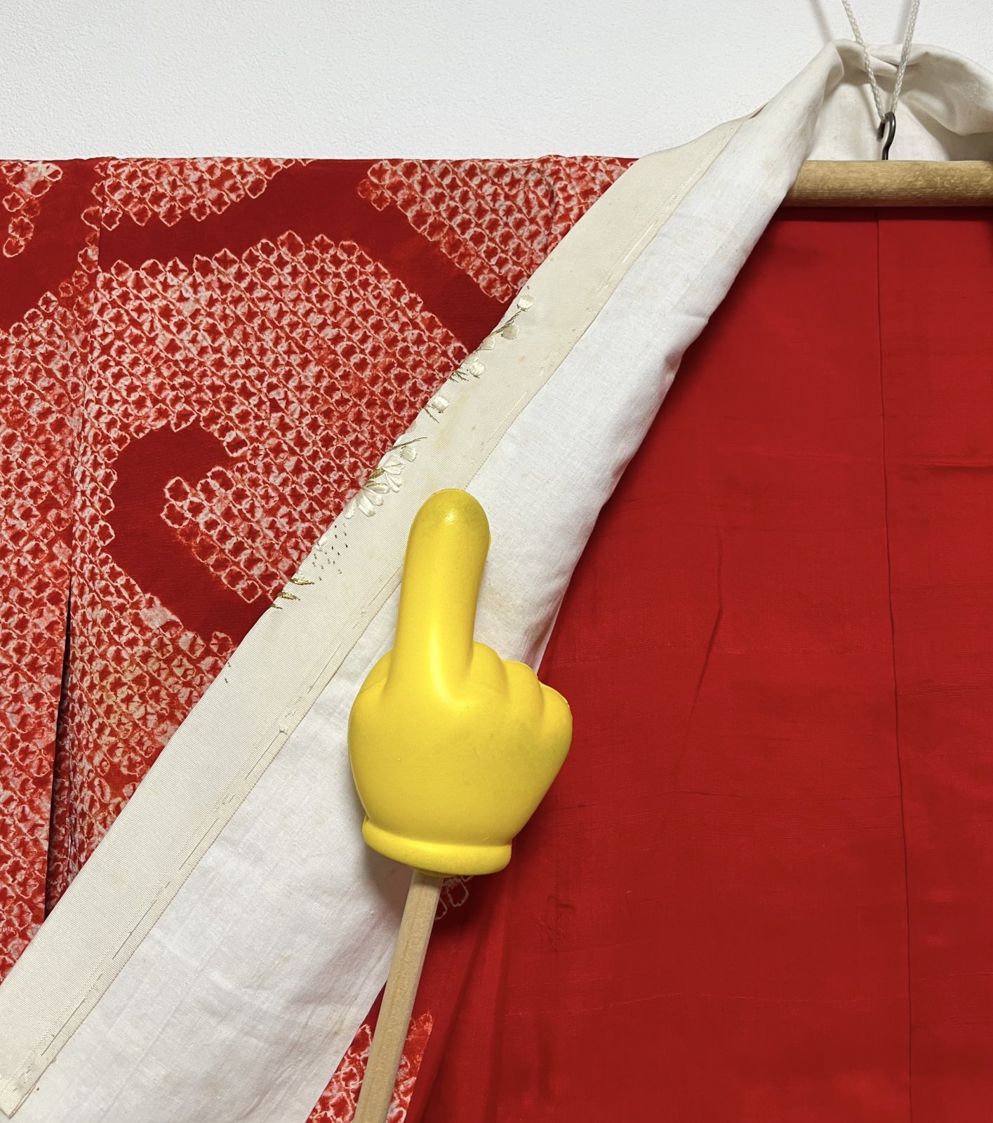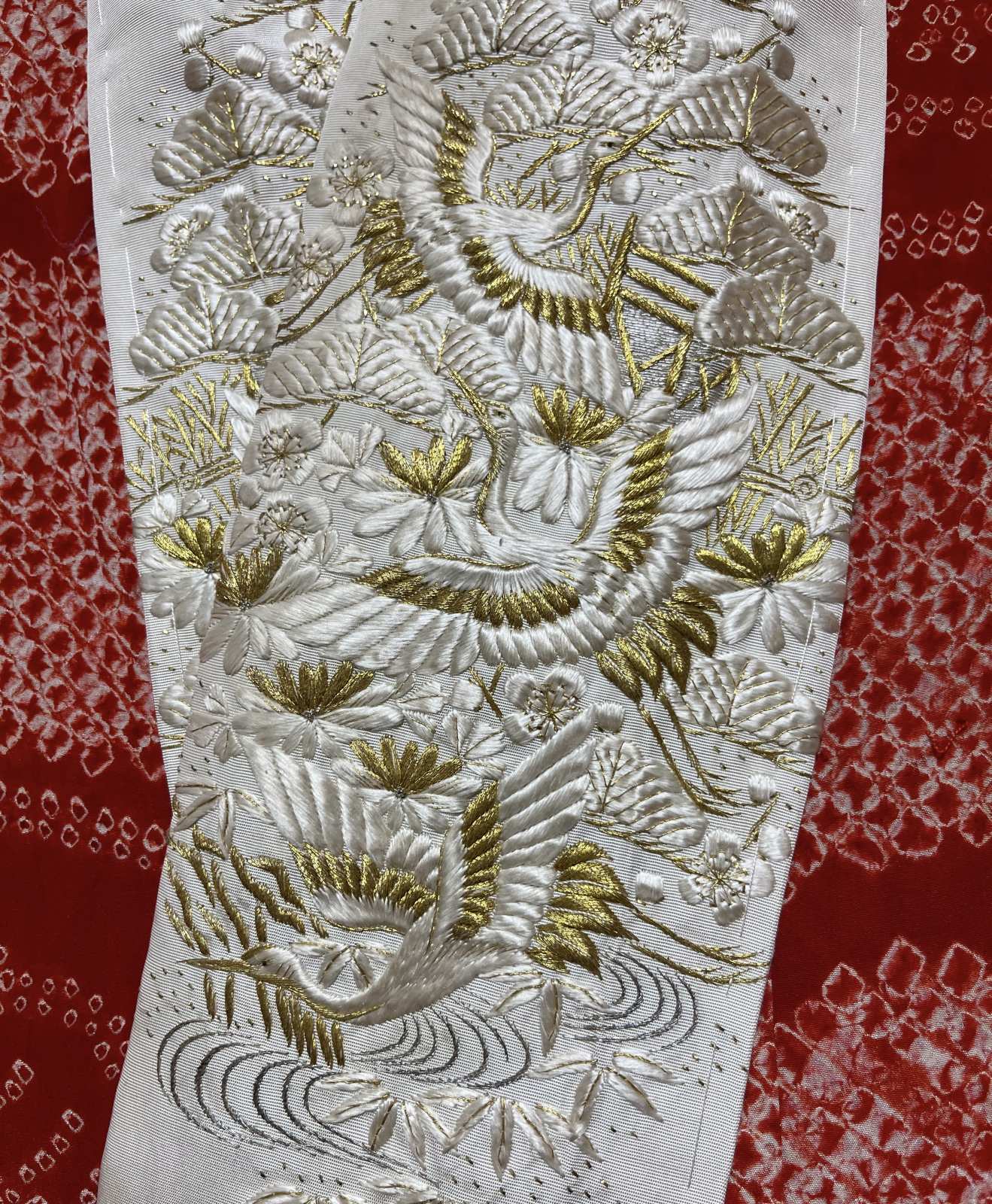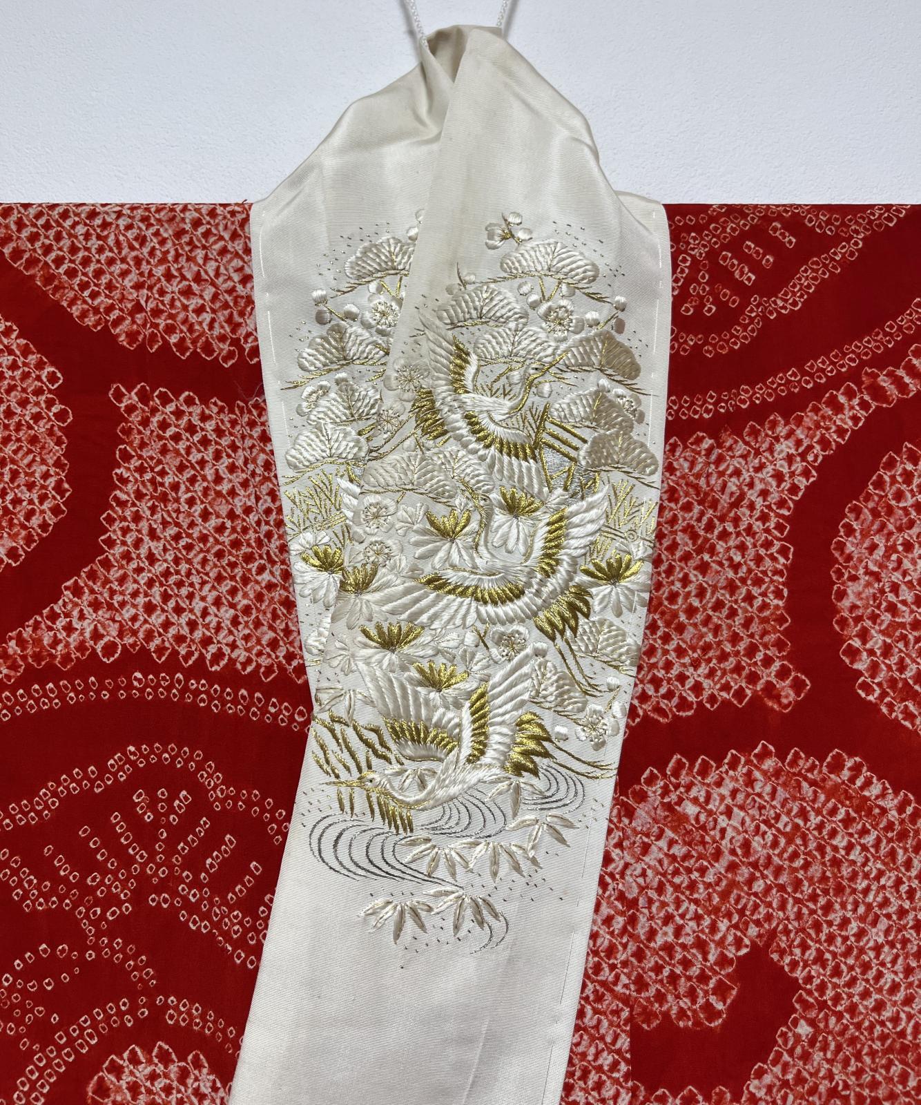 正絹 / アンティーク 振袖用長襦袢 / 絞り / 扇面 / 唐草 / 刺繍襟付き / 広衿 [0008]