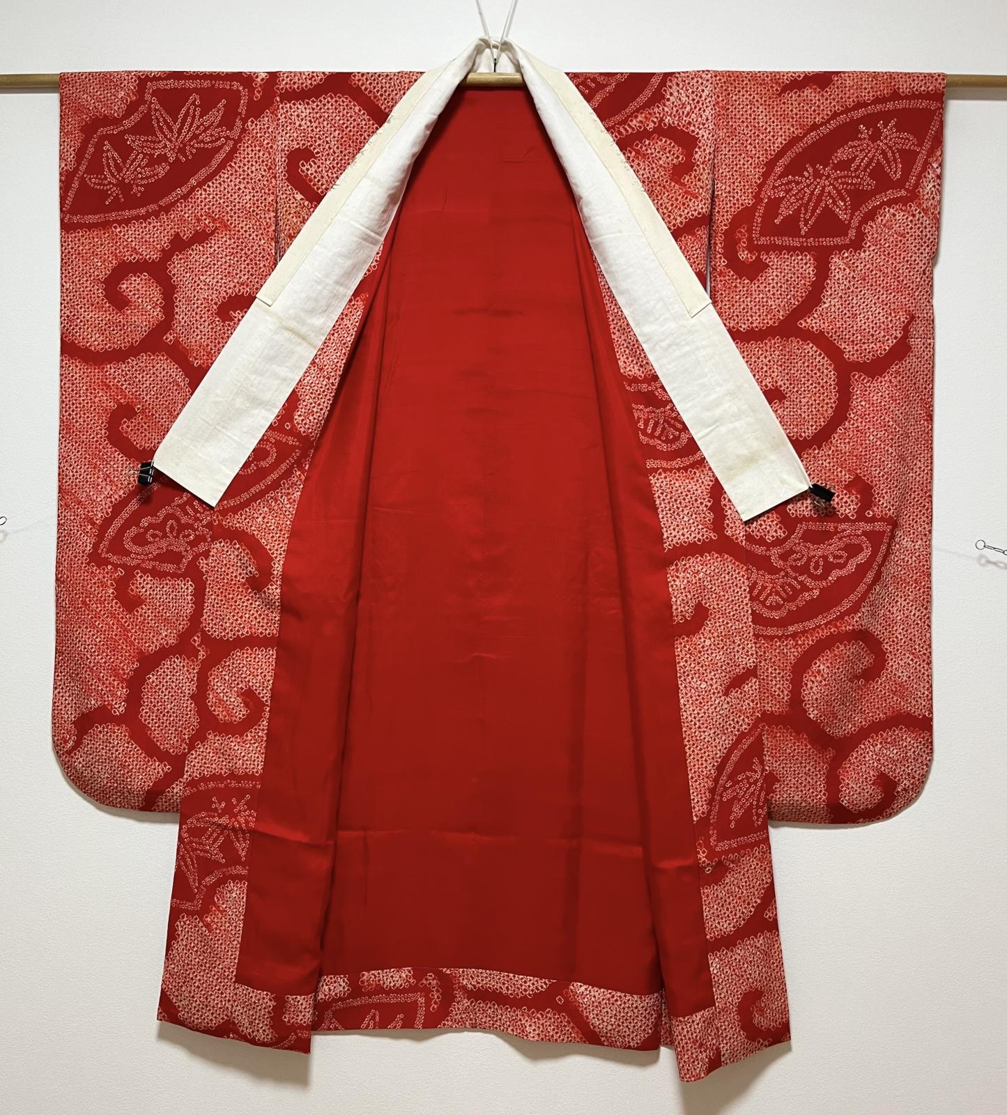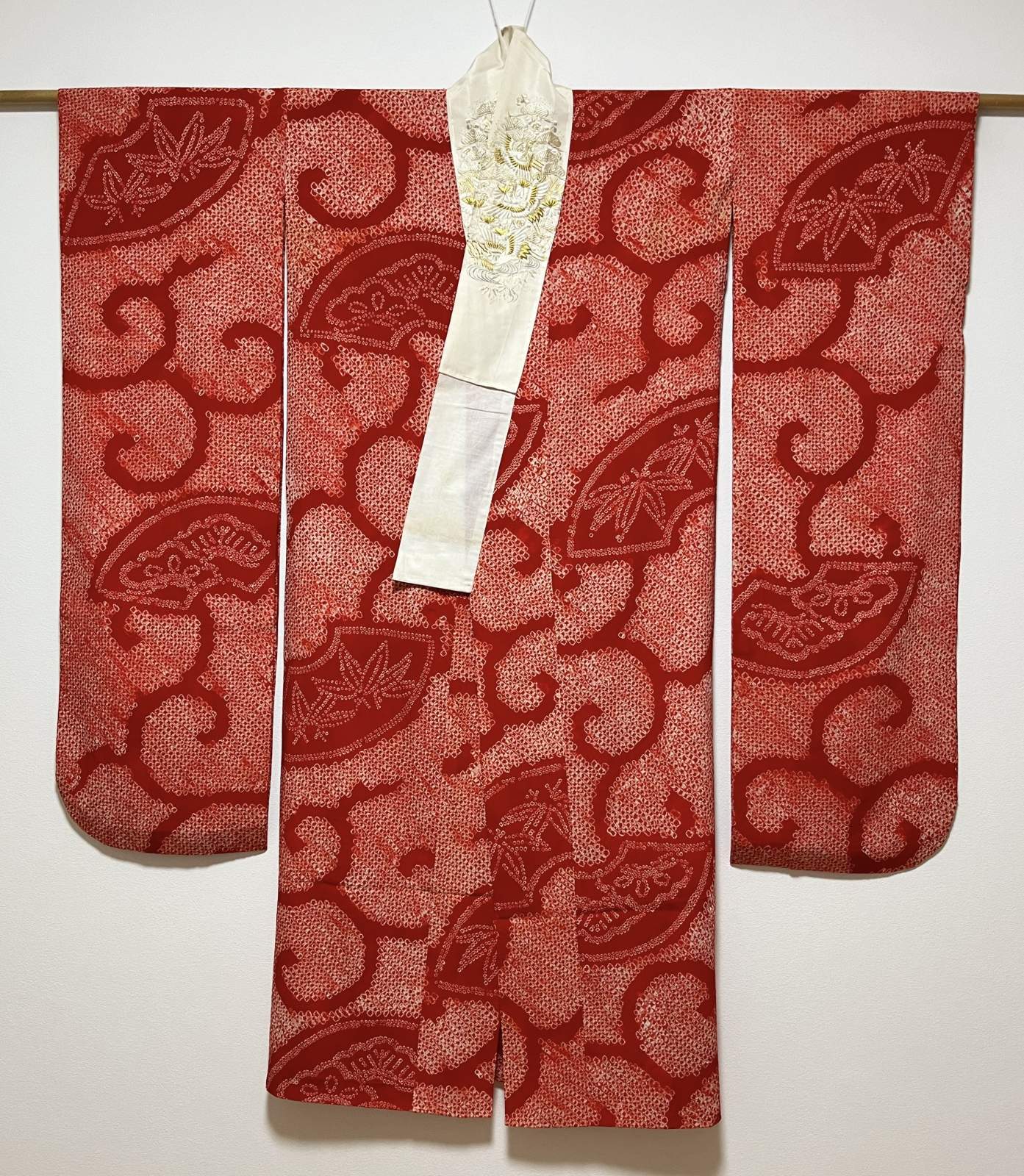正絹 / アンティーク 振袖用長襦袢 / 絞り / 扇面 / 唐草 / 刺繍襟付き / 広衿