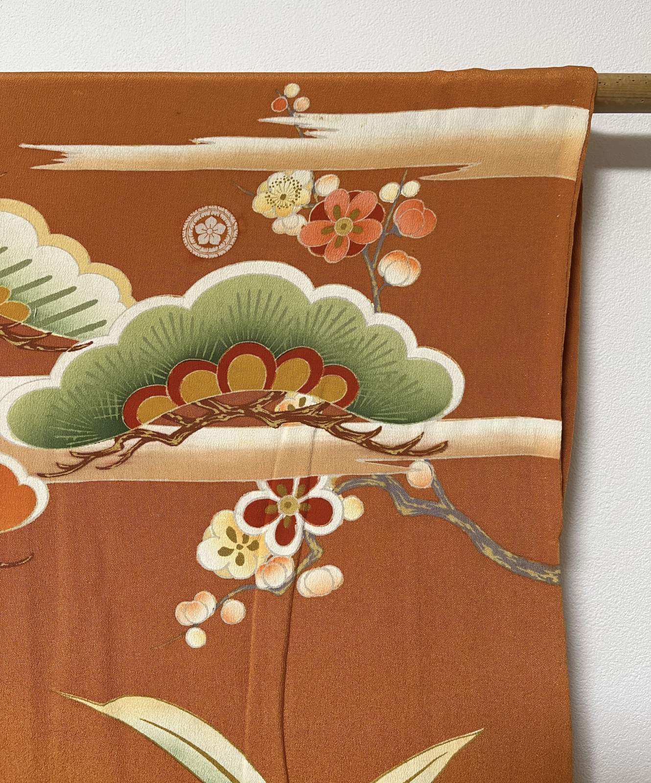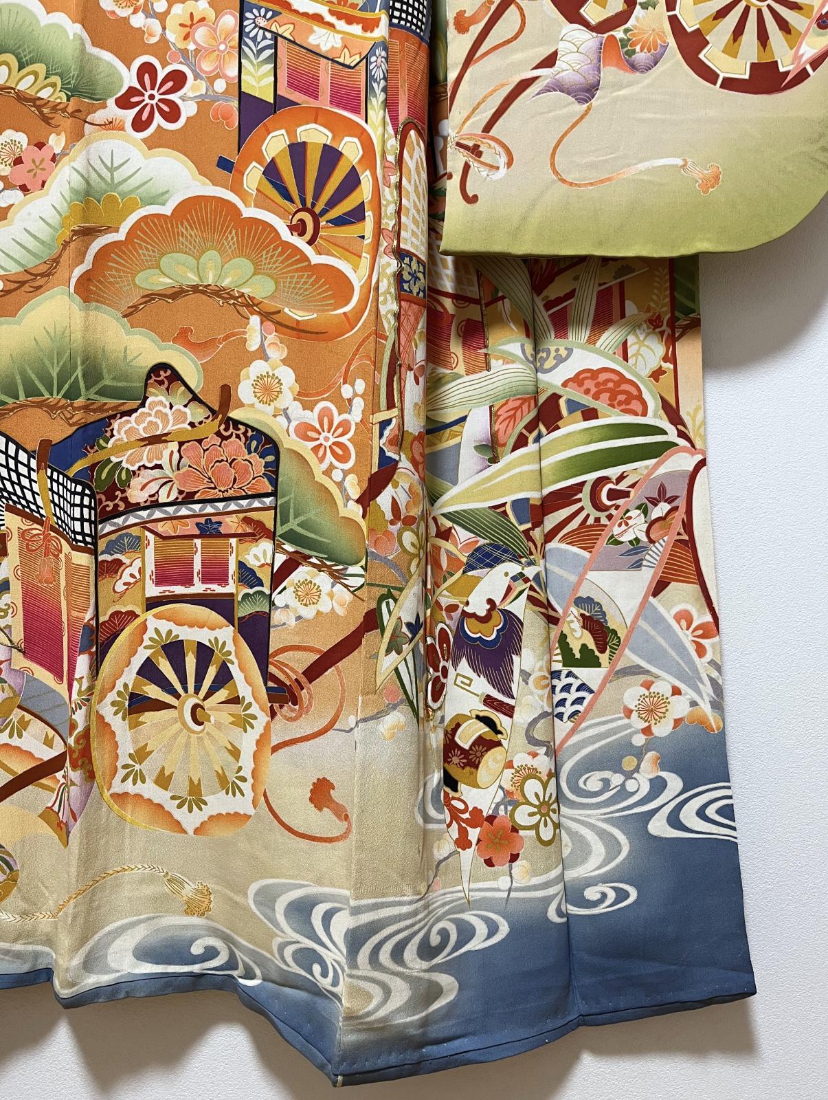 正絹 / アンティーク 振袖 / 松竹梅 / 御所車 / 観世水 / 橙茶色 [0013]