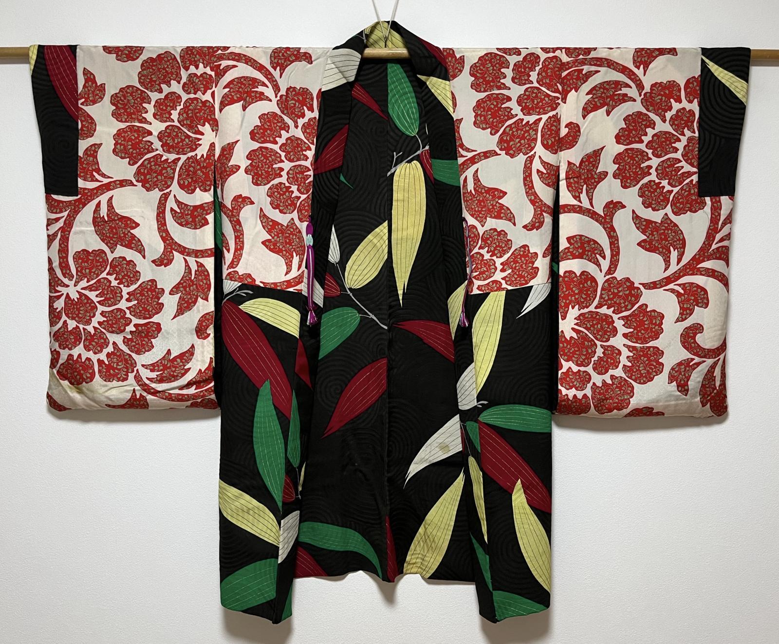 正絹 / アンティーク 長羽織 / 笹の葉 / うずまきの地紋