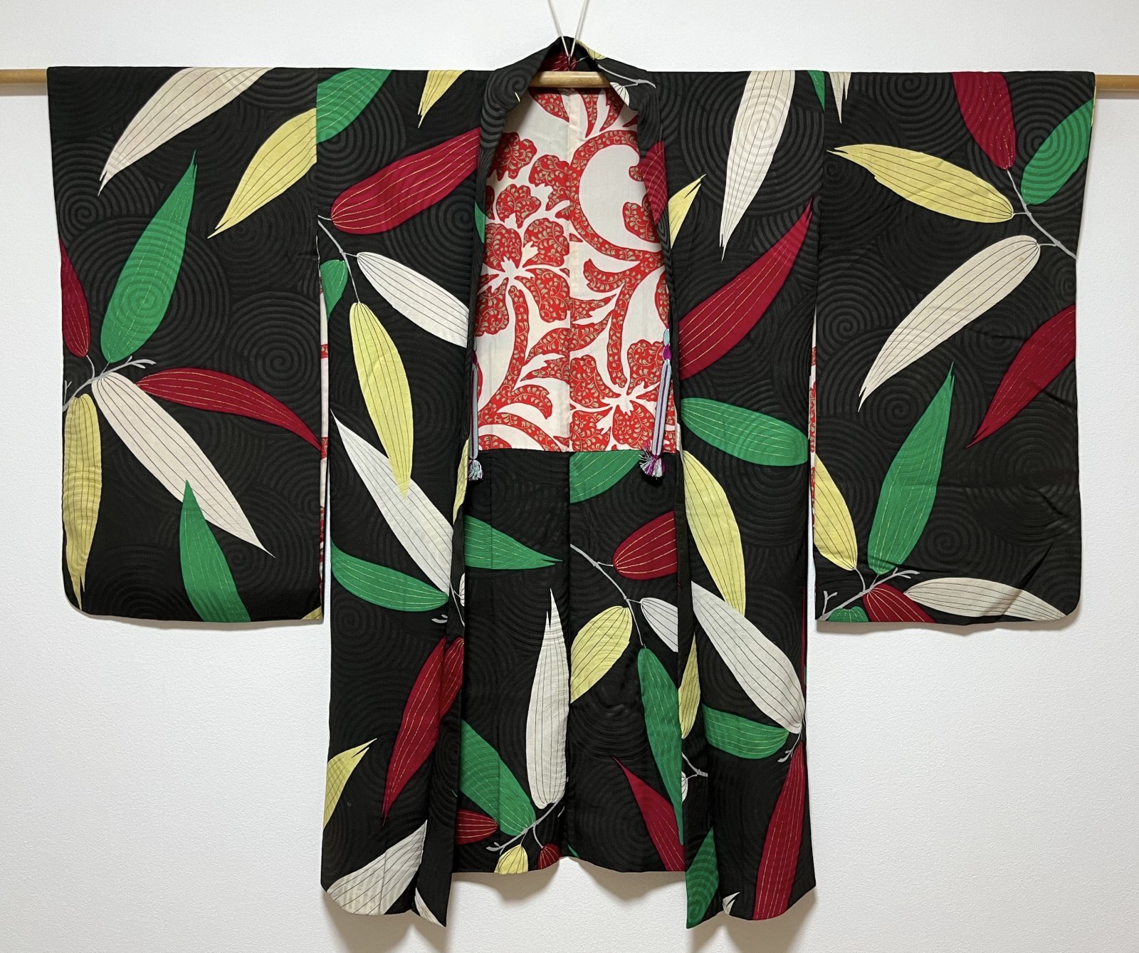 正絹 / アンティーク 長羽織 / 笹の葉 / うずまきの地紋 [0015]