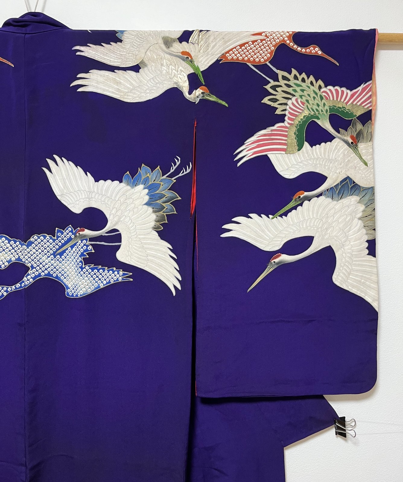 正絹 / アンティーク 訪問着 / 飛鶴 / 刺繍入り / 広衿 / 濃紫 [0021]