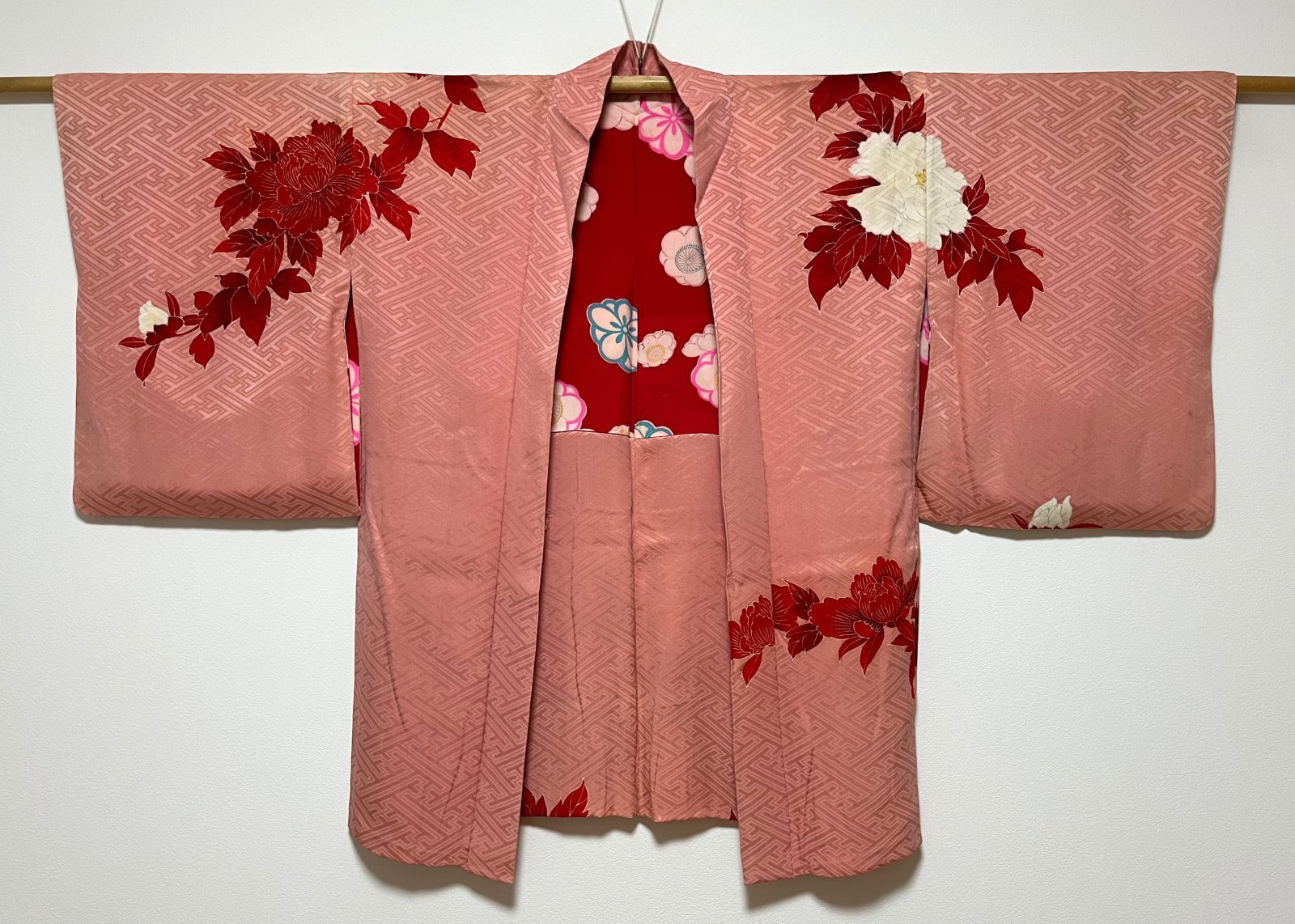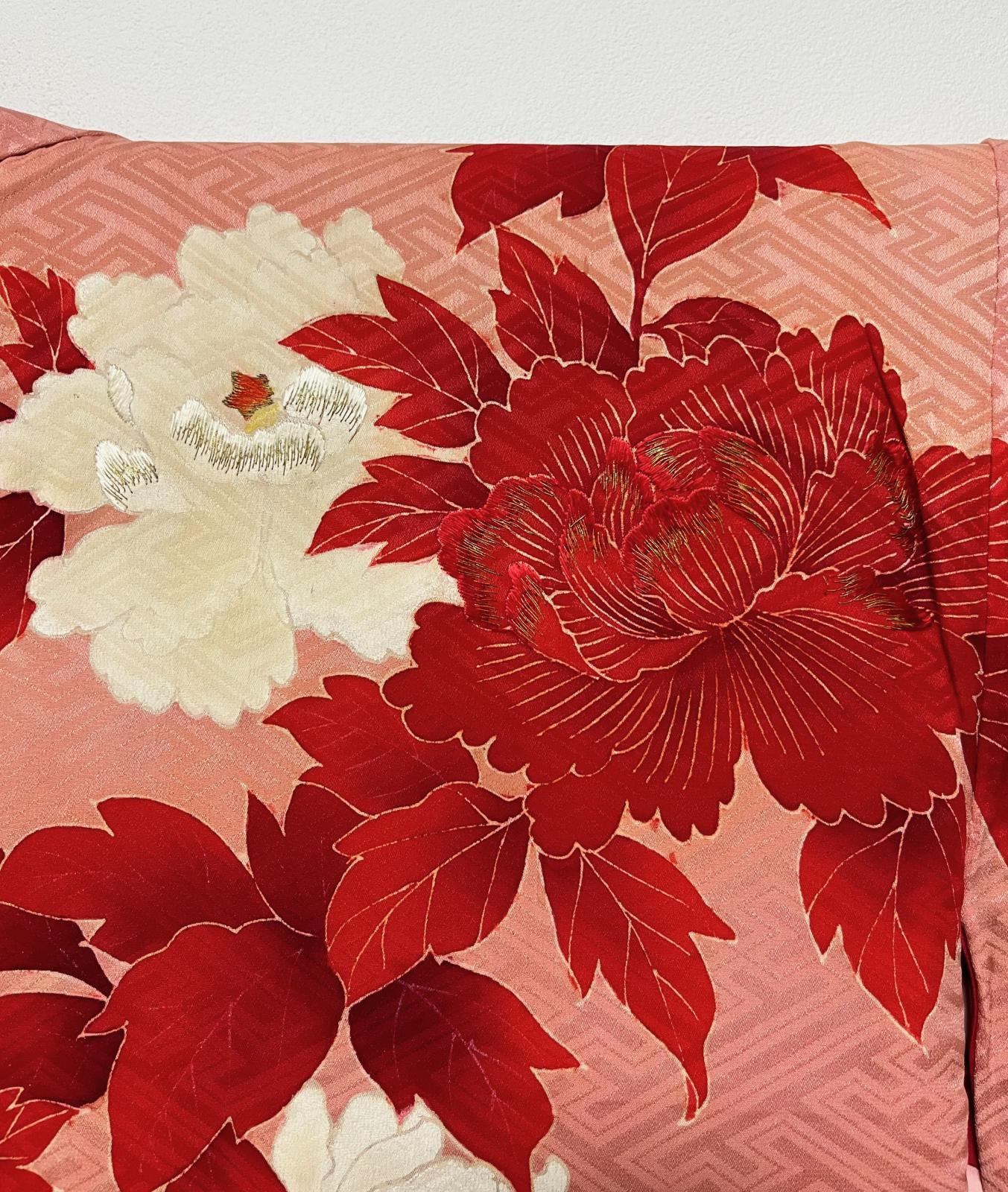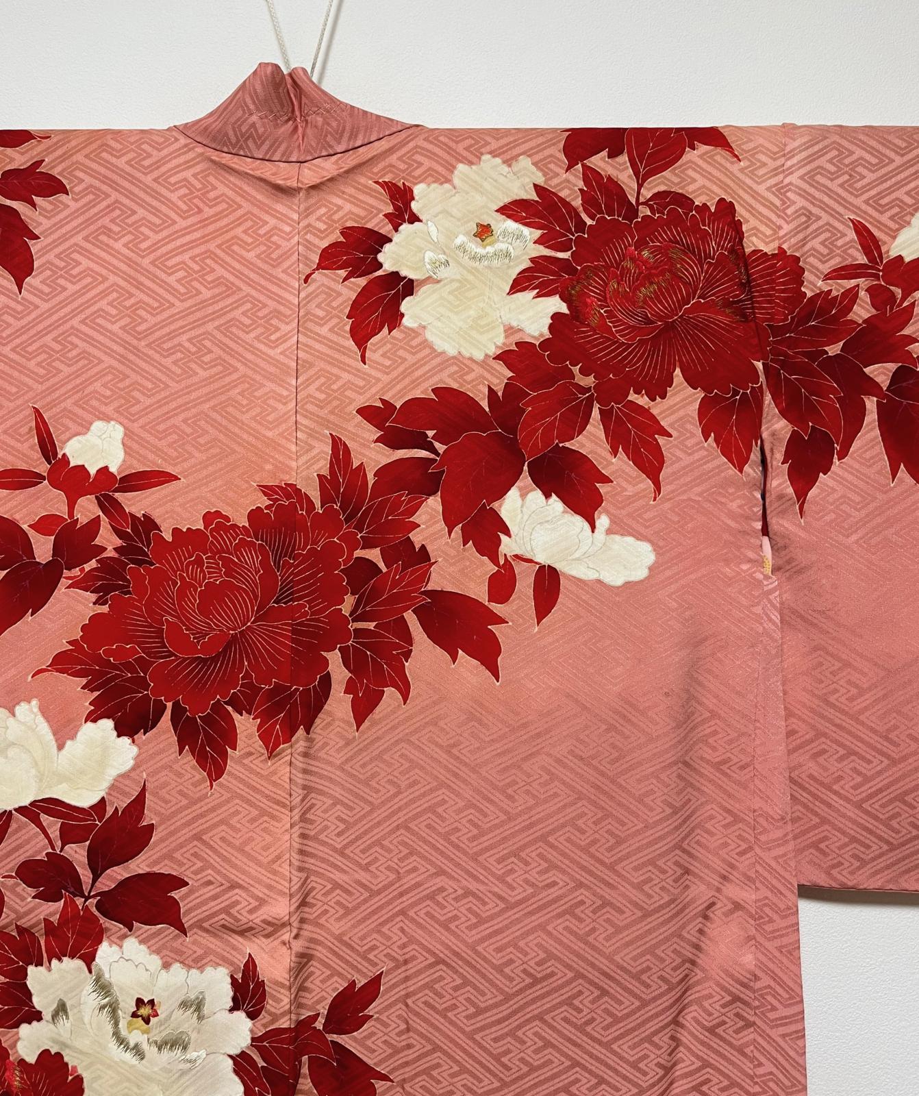 正絹 / アンティーク 羽織 / 牡丹 / 紗綾形 / 手刺繍 / コーラル [0027]