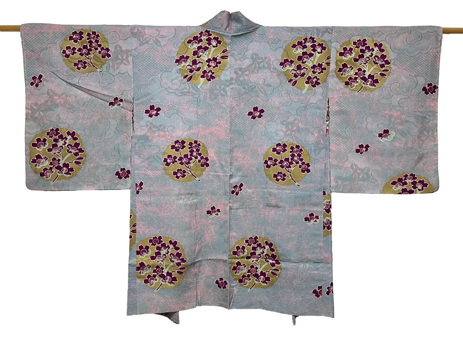 正絹 / アンティーク 羽織 / 瑞雲と橘の地紋入り / グレー