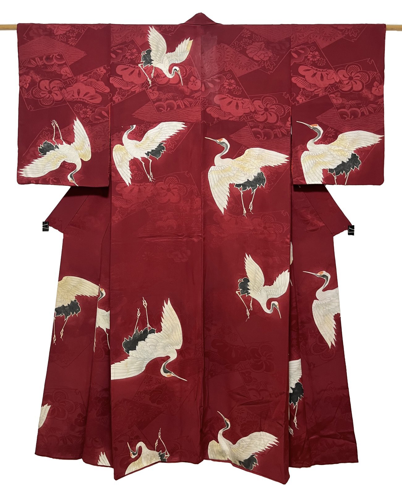 正絹 / アンティーク 小紋 / 飛鶴 / 濃赤