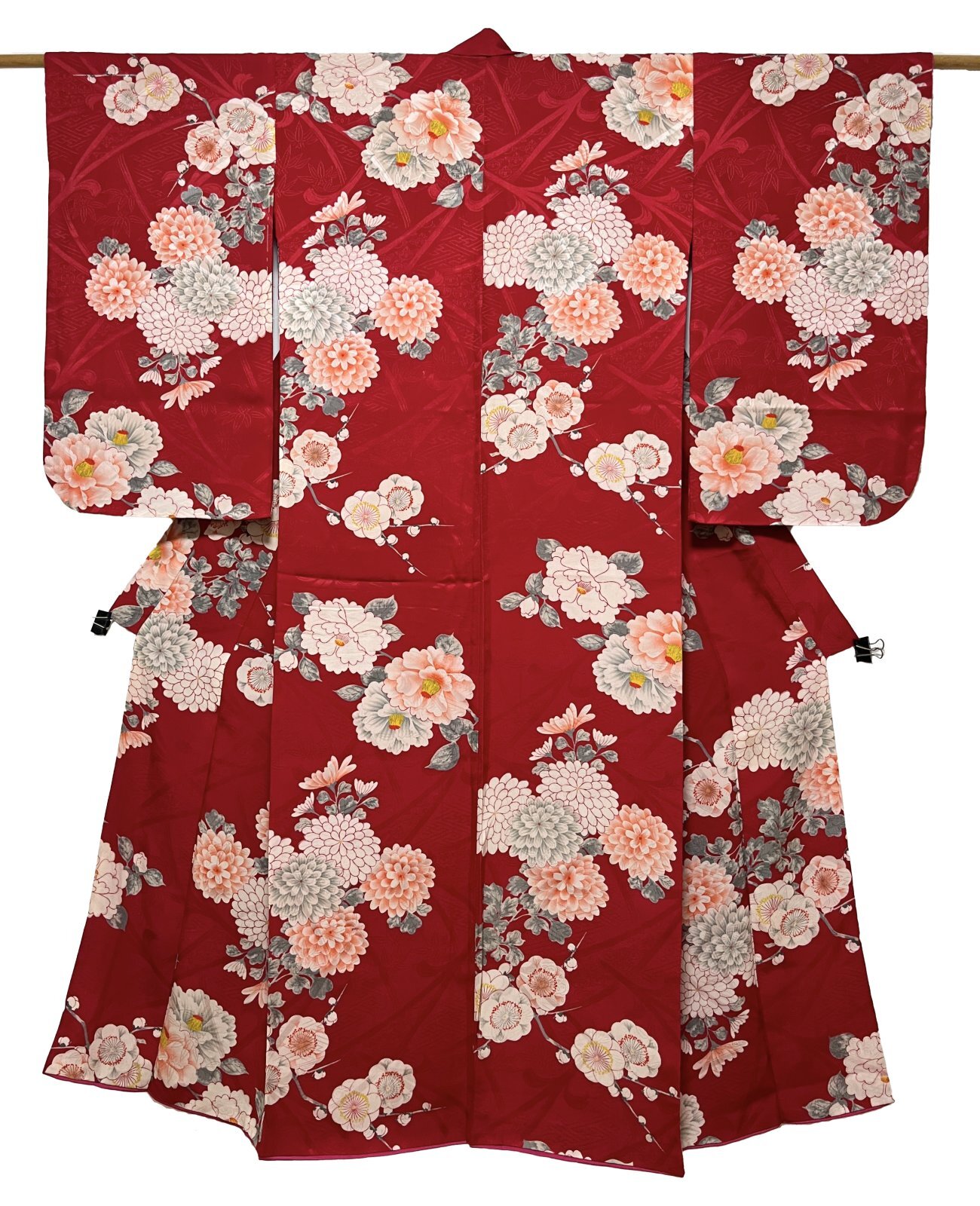 正絹 / アンティーク 小紋 / 椿 / 牡丹 / 菊花 / 梅 / 濃いめの赤