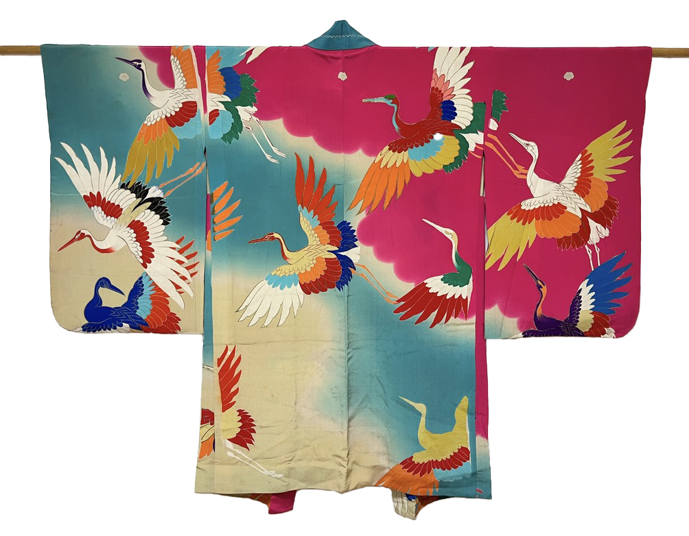 正絹 / アンティーク 長羽織 / 飛鶴 / 瑞雲 / マゼンタ x ブルー