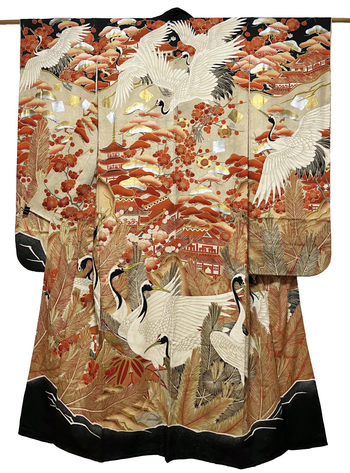 正絹 / アンティーク 婚礼黒引き振袖 / 立鶴 / 松竹梅